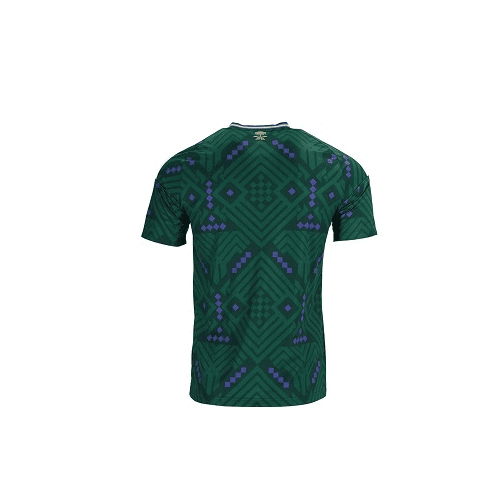 While honoring the classic green long associated with the national team, the jersey incorporates fresh purple and gold highlights for a contemporary edge. A delicate all-over pattern adds depth to the fabric, while advanced performance materials offer breathability and all-match comfort. Designed for both aesthetics and utility, this jersey brings legacy and innovation together seamlessly.