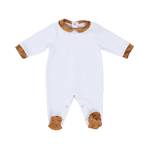 A beautifully crafted gift set for baby boys by the renowned Italian designer Alviero Martini. Made from soft, breathable cotton, this charming set features the brand’s signature beige Geo Map print trims, adding a distinctive designer touch.