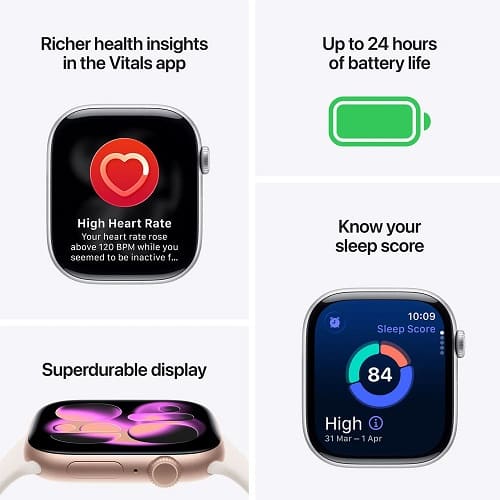 The Apple Watch Series 11 GPS helps you live healthier, train smarter, and stay connected. With Sleep Score insights, advanced workout tracking, and a sleek lightweight design, it’s your ultimate daily companion. Stay connected through your iPhone or Wi-Fi for calls, texts, music, and notifications.