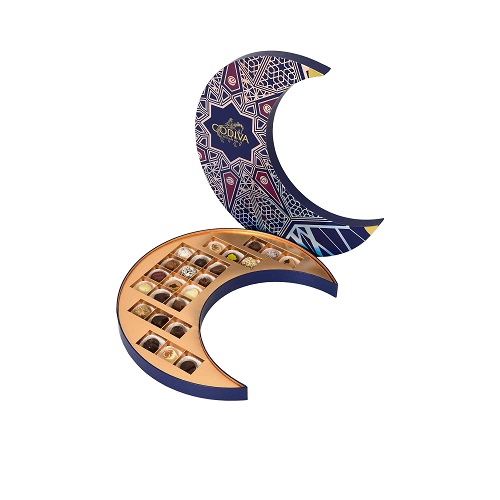 Celebrate the spirit of Ramadan with the Godiva Ramadan Moon Shaped Chocolate Box, a stunning crescent-inspired gift filled with 24 premium Godiva chocolates. Designed to symbolize togetherness and generosity, this elegant moon-shaped box brings luxury and tradition together in one unforgettable presentation.