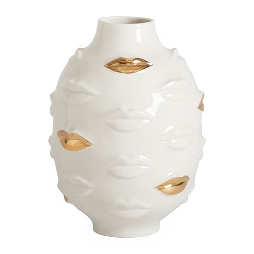Wrapped in an expressive collection of moody mouths, our Gilded Gala Round Vase is a kiss of cool for your table, mantel, or shelf. Inspired by Gala, wife and muse of Salvador Dali.
