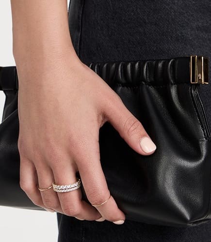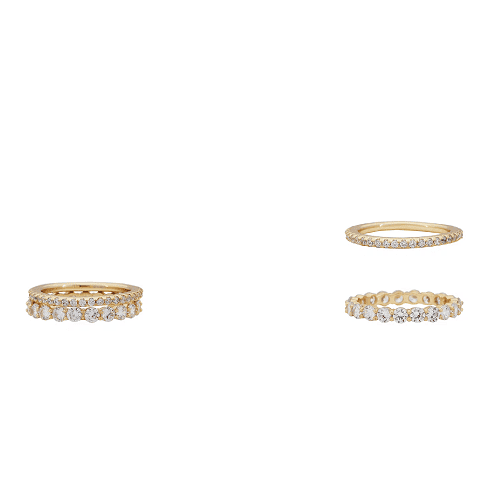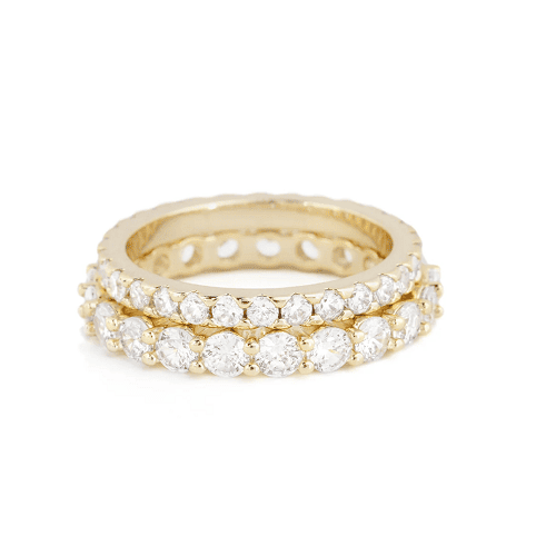 A set of 2 glimmering SHASHI rings, embellished with rows of classic prong-set cubic zirconias.