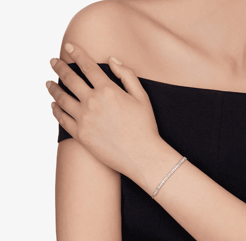 It is a tennis slide bracelet that is made from high-quality sterling silver and features sparkling cubic zirconia stones.