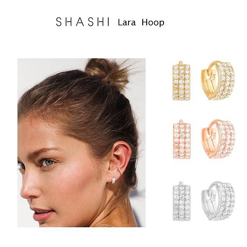 • Shashi Lara Huggie Gold earrings add a touch of elegance to any outfit