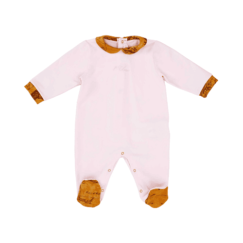 Pink babygrow, hat and bib set for boys and girls by luxury Italian designer Alviero Martini, made in soft cotton jersey.