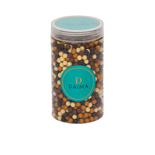 Assorted Crispearls come in a handy sprinkler for you to top off your glazed cakes, pastries, cream-topped drinks or desserts with one twist.