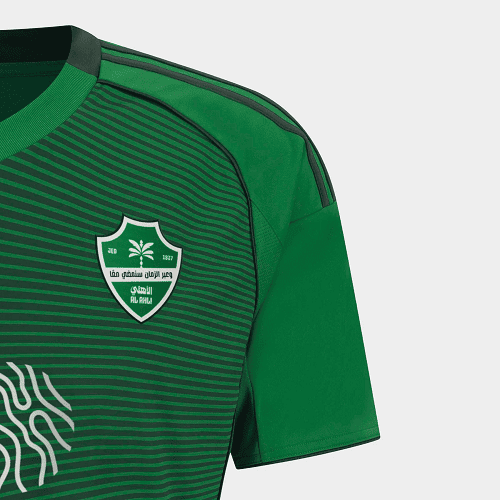 The Al Ahli FC Home Jersey pays homage to the palm tree, an enduring emblem of the club and a cherished symbol in local heritage. The shirt’s graphic pattern draws inspiration from the palm’s leaves, blending various shades of green to reflect the club’s traditional colors—strengthening the bond between the design and Al Ahli’s legacy.
