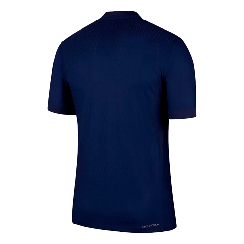 The 2025/26 home kit draws inspiration from three iconic Parisian landmarks, with a bold central stripe cutting through the classic blue design — a tribute to the exposed structural elements of these architectural masterpieces.