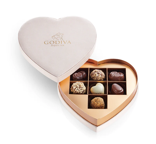 This exquisite Beige Heart Chocolate Gift box contains 7 assorted chocolates from GODIVA, all made with premium ingredients for a richer and more delicious flavor. This gift box is perfect for that special someone, containing a wide variety of classic GODIVA flavors, including creamy milk chocolate, dark chocolate, white chocolate, and more. The gift box has a sophisticated and romantic look and feel, with a bright red velvet heart-shaped design.