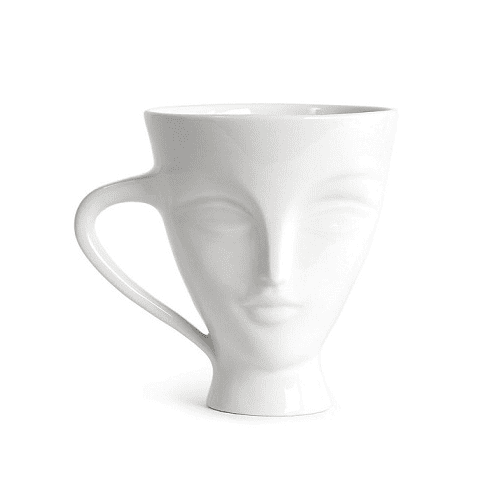Take every sip from so-so to sublime. Made from white porcelain with a sheer glossy glaze, our Giuliette Mug features our muse Giuliette's ethereal face on both front and back.