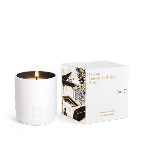 Au 17 Maison Francis Kurkdjian scented candle is presented in a porcelain jar from Limoges where the inside color is applied by hand.