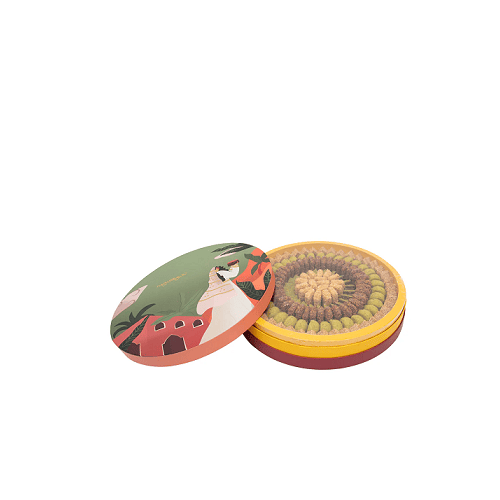 Rahash wafers with almond and roasted coconut ,Rangina ,Ghraiba pistachio, and Semsmia.