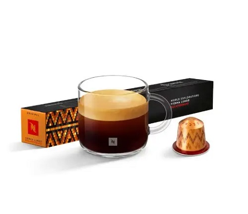 Vienna's coffeehouse tradition shaped the city's coffee culture, known for recipes and a smooth taste. WORLD EXPLORATIONS VIENNA LUNGO DECAFFEINATO reimagines this in a balanced long cup that delights with every sip. After decaffeination, we roast sweet Brazilian and Colombian Arabicas to reveal their inviting malty and aromatic notes. Enjoy it like a local: top up your decaf Lungo with hot water or whipped cream and pair it with a slice of cake.