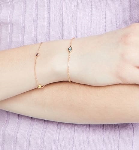 • Features a central evil eye charm symbolizing protection and good luck