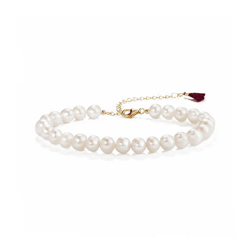 This Shashi bracelet features freshwater pearls and 14k vermeil hardware, including the extender chain.