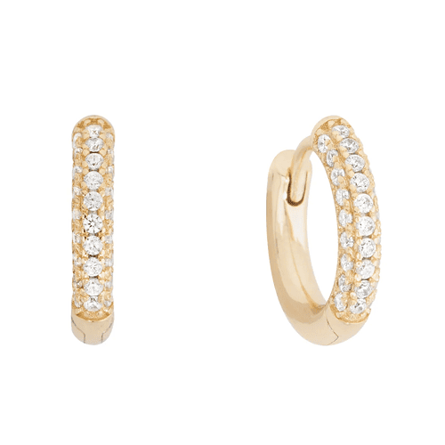 Shashi Pave Huggies Earring Vermeil are stylish and elegant earrings that feature a thick 18K gold layer on top of sterling silver.