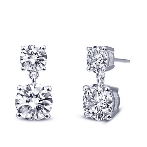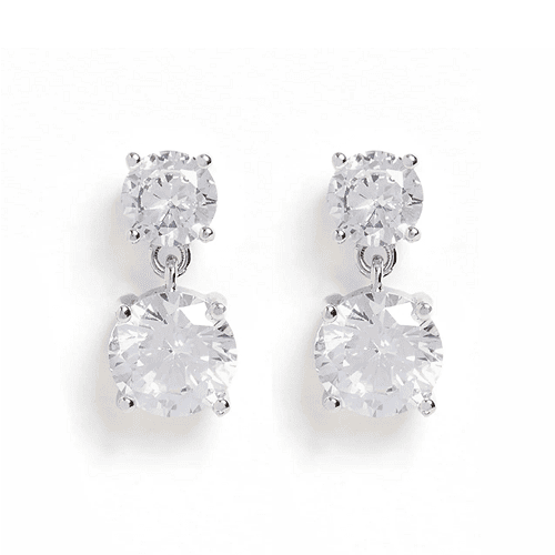 The earring features two round brilliant cubic zirconia stones that are meticulously matched for size, color, clarity and presence. The stones are prong set, giving them a secure and elegant look.