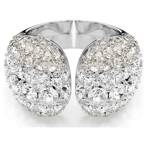 Dial up the glamour with this dazzling Sublima cocktail ring. The unique pavé design is rhodium plated and features a domed metal base that provides exceptional volume. The Meteora pattern of differently sized crystals adds to the mesmerizing effect. Pair this bold piece with matching Sublima earrings for a showstopping look.