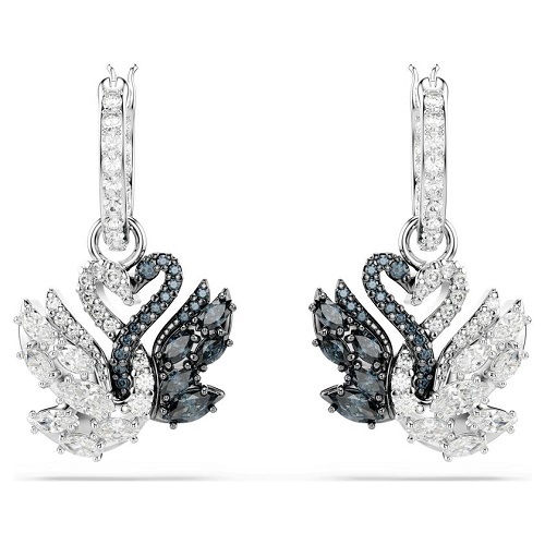 Beauty takes flight in these emblematic pierced earrings, crafted in tribute to Swarovski’s iconic swan logo. Hanging from delicate pavé hoops, each piece features two intertwined swans, in rhodium and ruthenium plating, with an all-over decoration of black and white Swarovski Zirconia in round and marquise cuts. Add these revered silhouettes to your style for a pure touch of elegance.