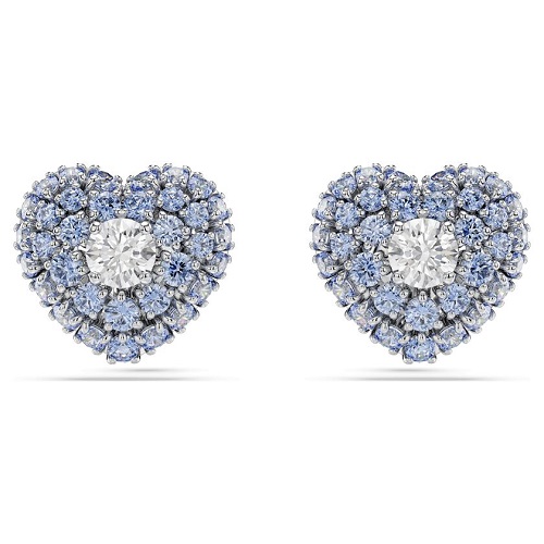 These heart-shaped studs are a colorful way to bring passion into your style. Each rhodium-plated piece has been created with a cage design for maximum volume. To enhance the domed effect, they are adorned with round blue Swarovski Zirconia, set in place using the dazzling chatonnage technique, while at the center, a single bright Swarovski Zirconia catches the light from every angle. Pair them with a matching pendant for the ultimate look of love.